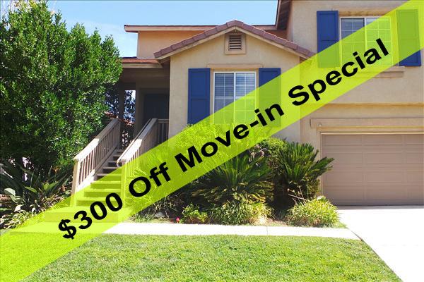 This fantastic home features spacious living areas throughout. This property is managed by Management One only. we do not list on Craig's List, If you are asked to send money to anyone other than Management One, it is a scam. Downstairs boasts gorgeous wood flooring extending from entry way through family room and kitchen. Plenty of room for entertaining in the formal living and dining areas. The kitchen shows off granite counters and separate informal dining area. Kick off your shoes and relax in the comfortable family room. Exquisite master suite with his & her vanity areas, large soak tub, and separate shower stall. Direct access to balcony overlooking a spectacular backyard with large covered patio area perfect for your BBQ and outdoor furniture. Close to shopping, dining, & freeway. *Bonus Amenity Included* - A portion of resident's total monthly amount due will be used to have HVAC filters regularly delivered to their doorstep under the Utility & Maintenance Reduction Program. This saves 5-15% on your energy bill and helps ensure a clean, healthy living environment. PLEASE NOTE – this property is managed by Management One only. If you are asked to send money to anyone other than Management One, it is a scam. Before sending money or your personal information to anyone, please contact Management One first to confirm at 951-735-2000
