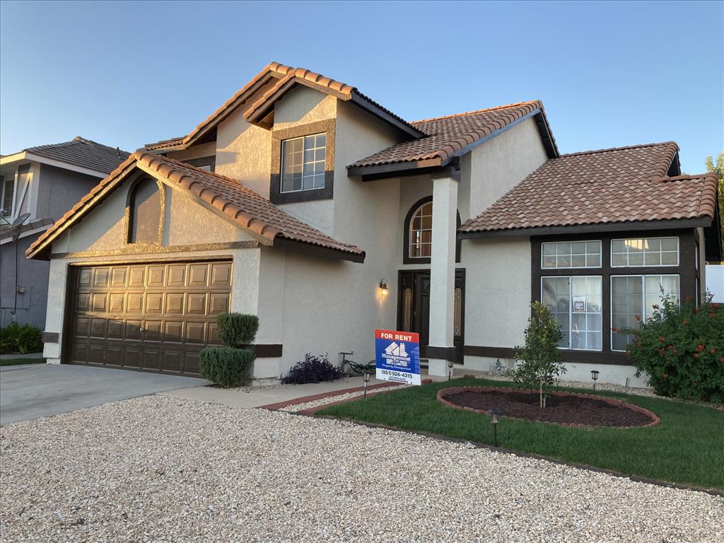 Amazing home with a grand staircase, living room with a tile fireplace, lovely kitchen complete with tile counters, it’s a MUST SEE. PLEASE NOTE -This property is managed by Management One only. If you are asked to send money to anyone other than Management One at 951-735-2000 it’s a scam. Call us FIRST. The real gem of this property is the gorgeous backyard, Lawn service is included, so no need to worry about maintenance! Property is located nearly the 60 freeway so your commute to Riverside is easy. Located near the Moreno Valley mall, there are so many amenities to enjoy! Call today at 951-735-2000 to view this gorgeous home or email our leasing consultant at lcor@mgtone.com.